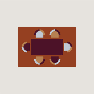 Allow for at least 2 feet of extra space on all sides, so guests can pull back chairs without tripping over the edge of the rug. We recommened low-pile rugs for the dining room, they are easier to clean and chairs move easily over them.